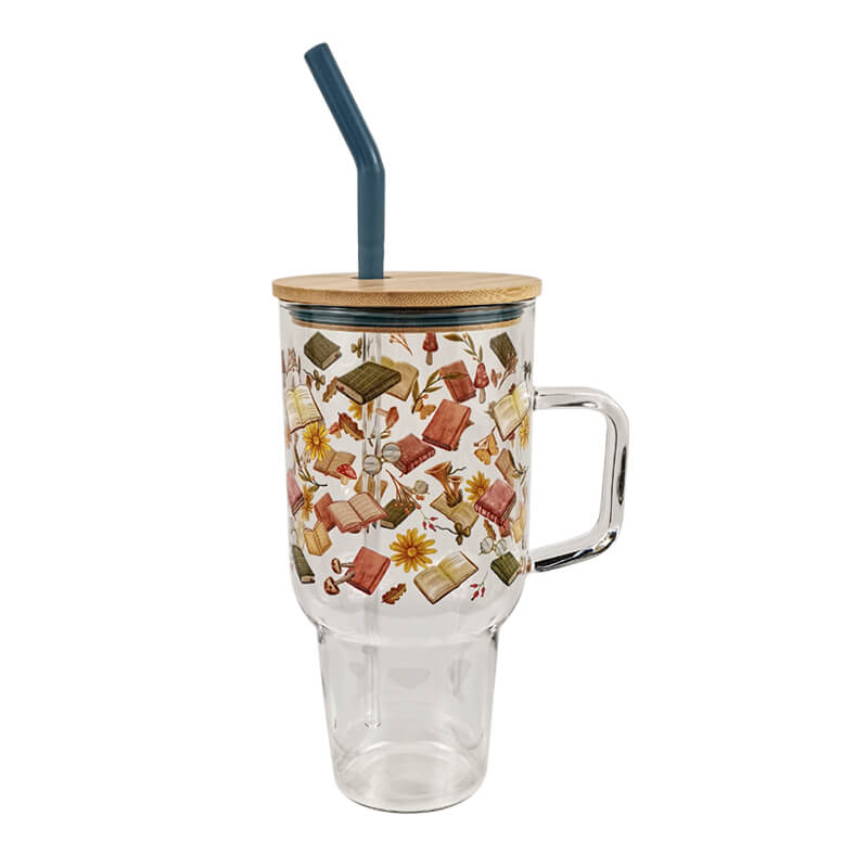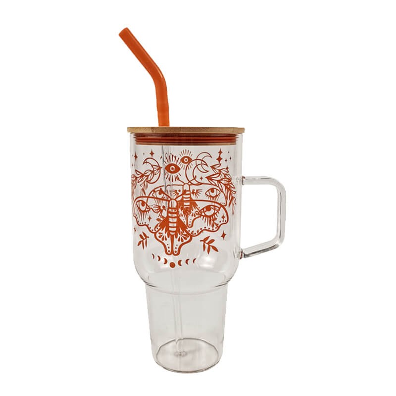 1000ML High Borosilicate Glass Mug with Straw
