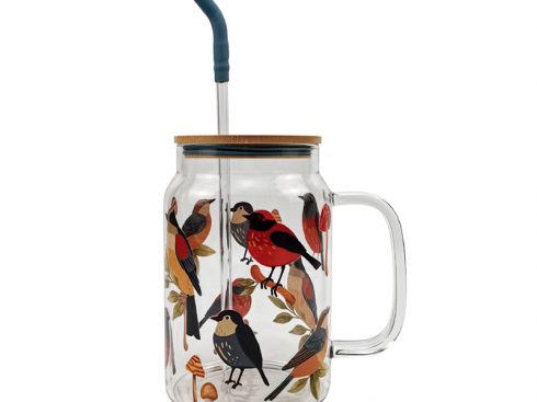 1500ML High Borosilicate Glass Mason Mug with Straw