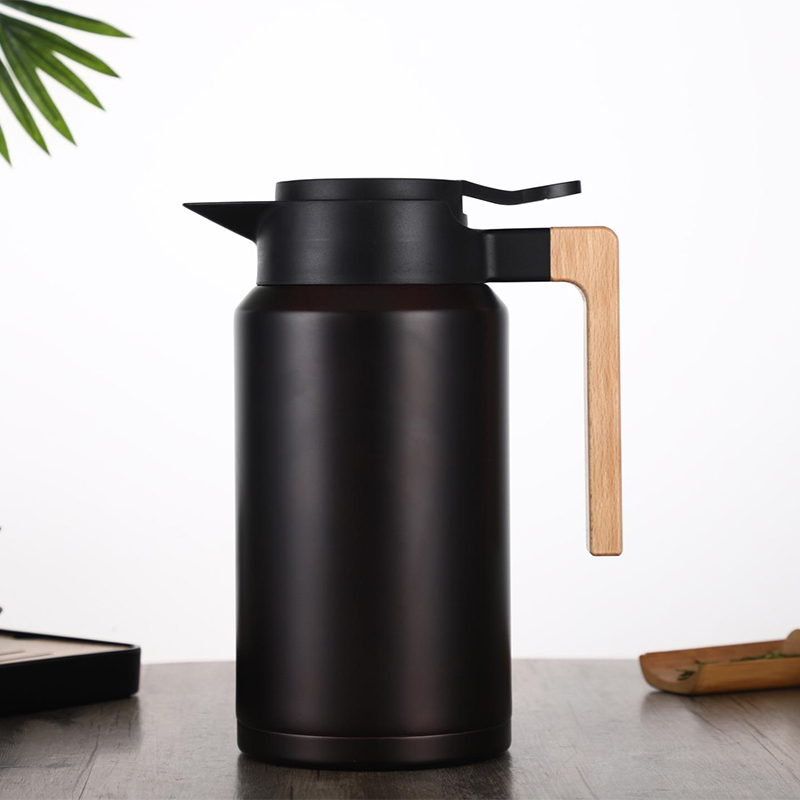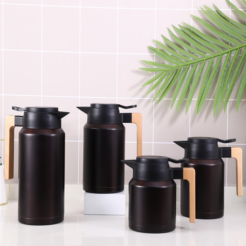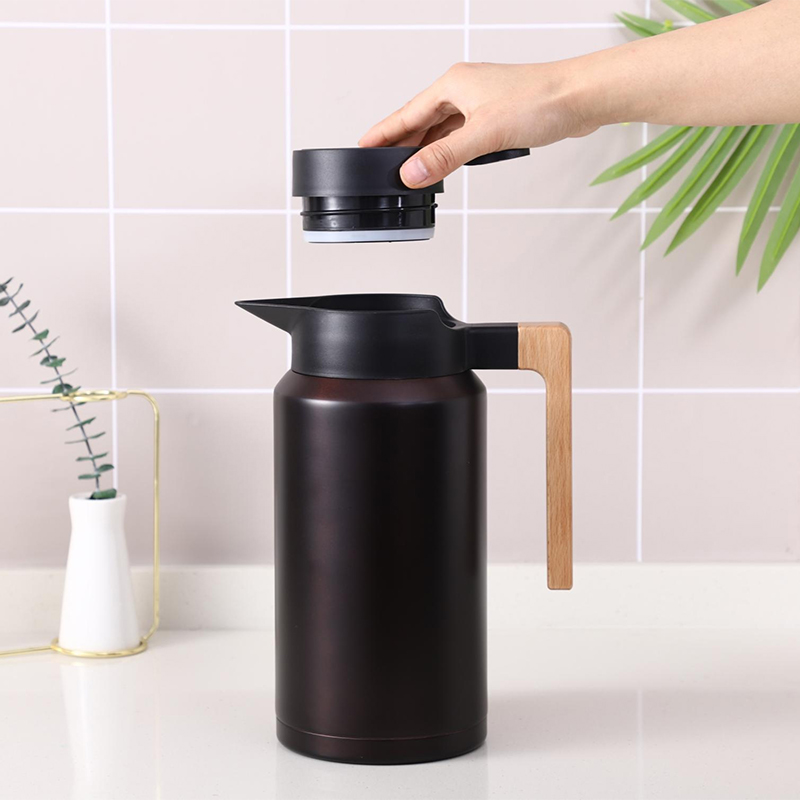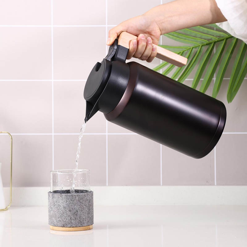 1500ML Stainless Steel Thermal Tea Kettle Insulated Vacuum Flask Wooden Handle Coffee Pot Jug Beverage Dispenser For Drinks
