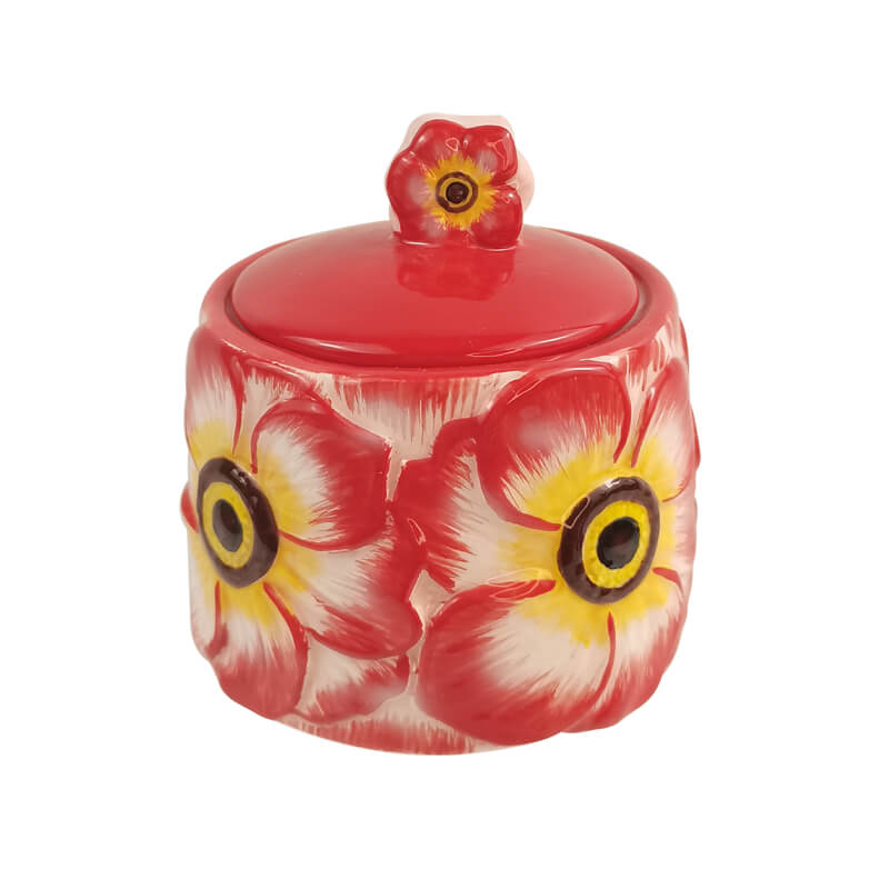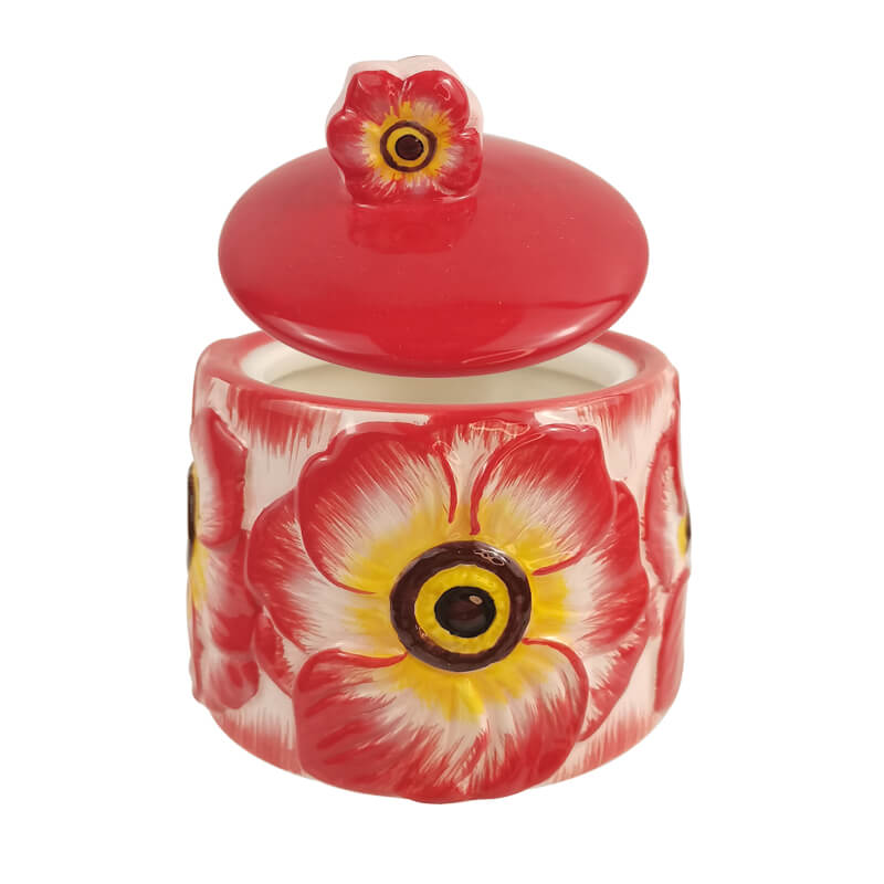 | Product name | 240ML Ceramic Cookie Jar with embossed Hibiscus Flower | ||