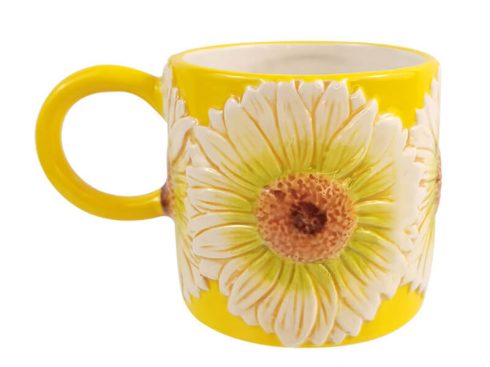 440ML Ceramic Coffee Mug with Daisy Flower Relief