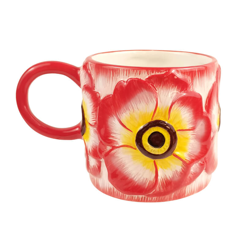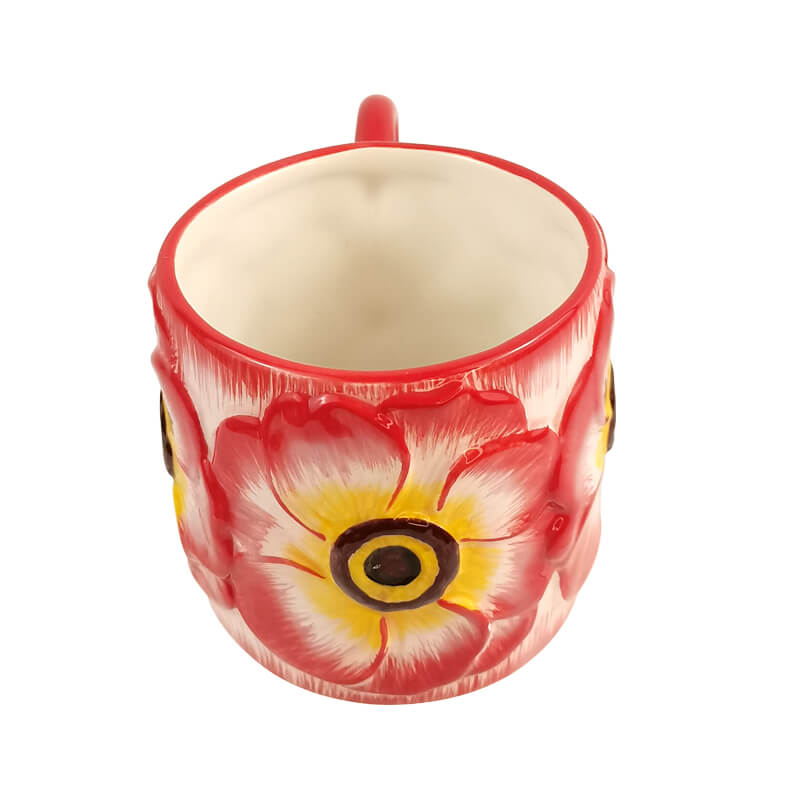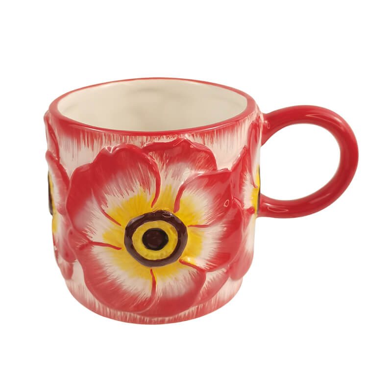 440ML Ceramic Coffee Mug with Hibiscus Relief