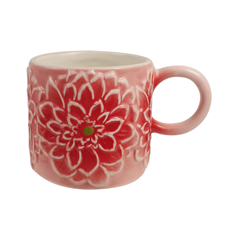 440ML Ceramic Coffee Mug with Lotus Flower Relief