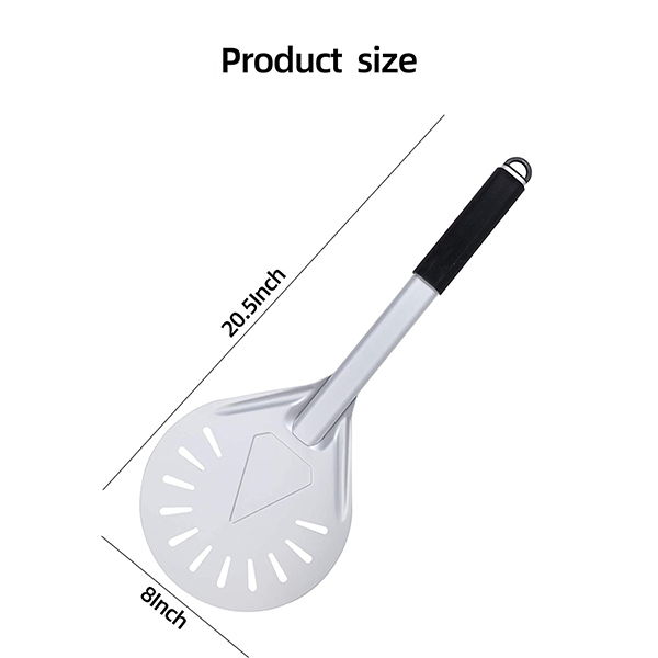 🍕Well-designed size: The metal pizza peel has a pizza paddle diameter of 8″ and a total length of 20.5″. The size is not too long but is suitable for outdoor pizza ovens and is extremely portable.