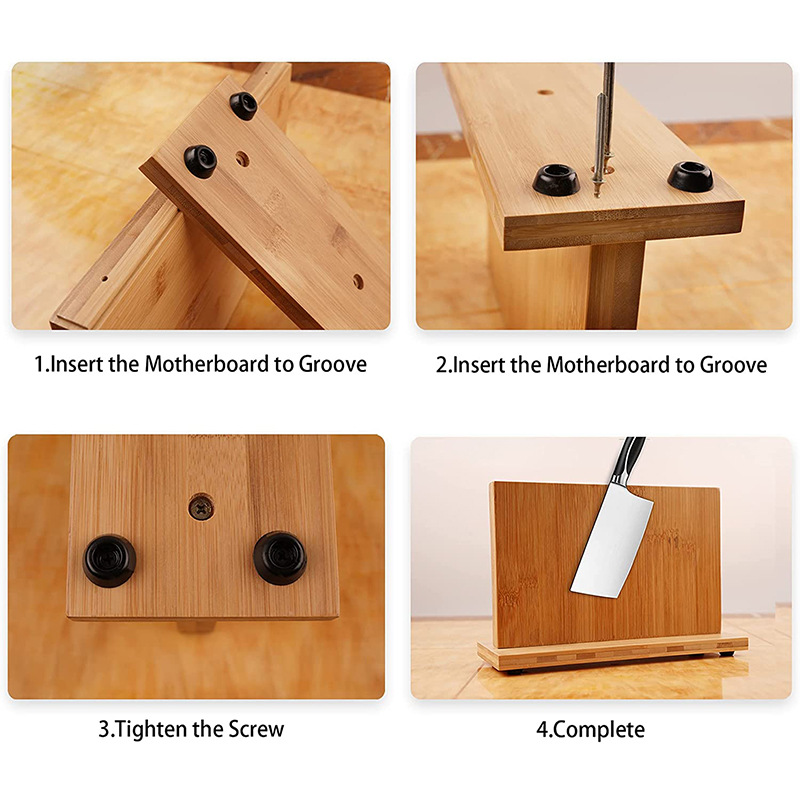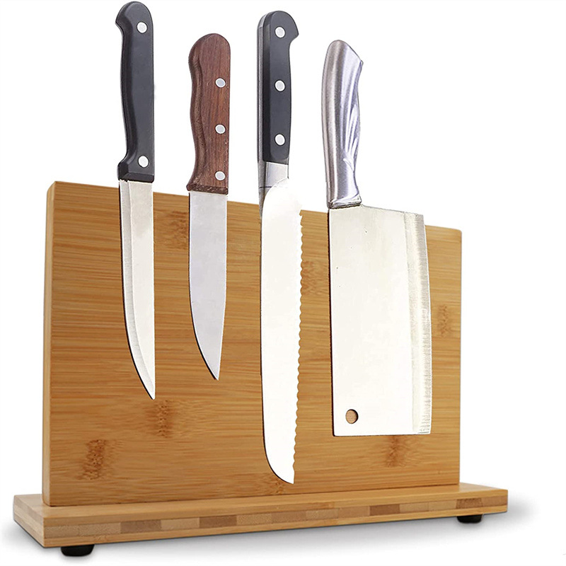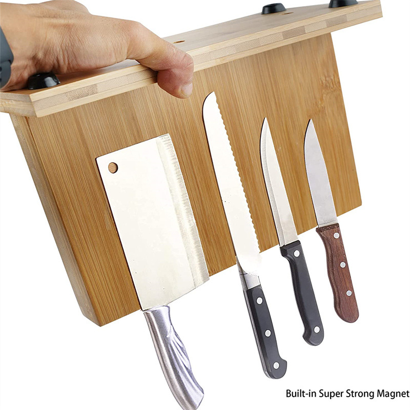 Magnetic Knife Block, FBJ Bamboo Knife Holder with Powerful Magnet, Kitchen Knife Organizer Block for Storage, Double Sided Strongly Magnetic