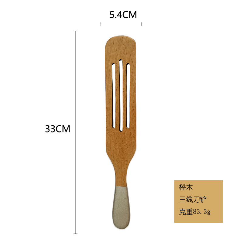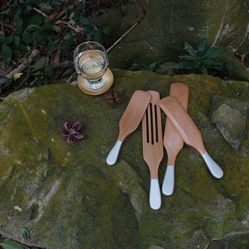 Custom Logo Beech Silver Handle Spurtle Set Of 4 Kitchen Cookware Cooking Spatula Set Slotted Wooden Spatula Frying Spatula