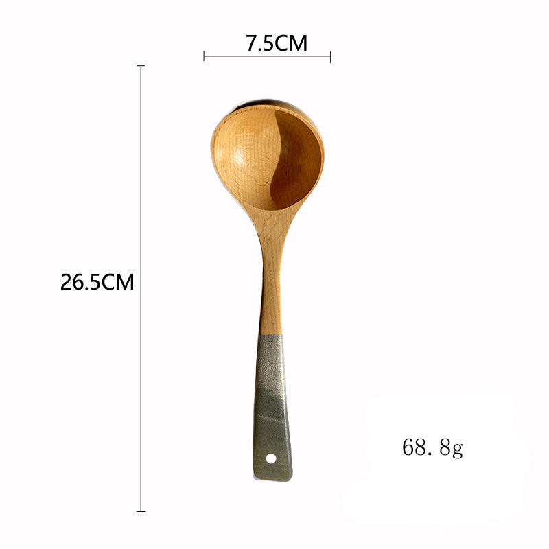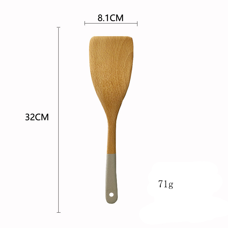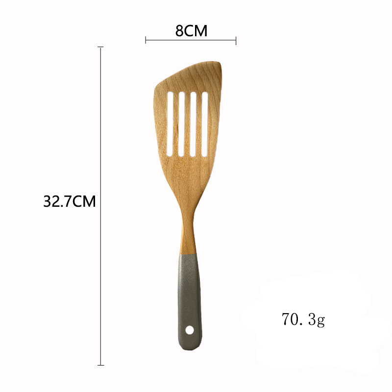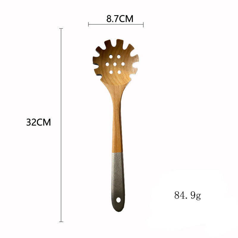 Beech Silver Handle Spaghetti Noodles Japanese-Style Curved Spoon Non-Stick Frying Shovel Slotted Wooden Shovel Kitchen Utensils Set Of 5