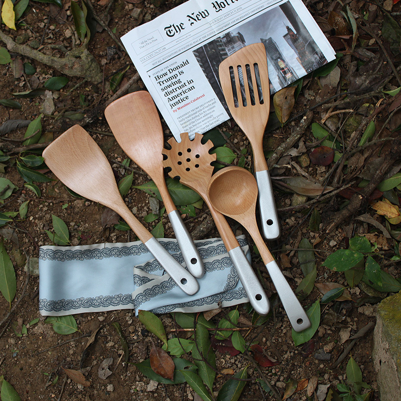 | Product Name | Beech Silver Handle Wooden Shovel Kitchen Utensils Set Of 5 | ||