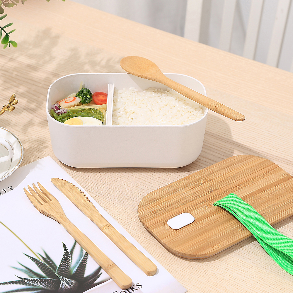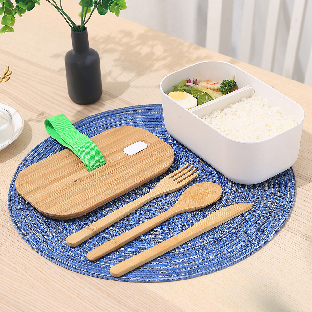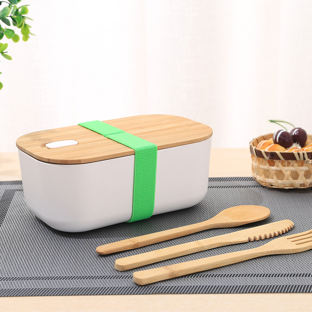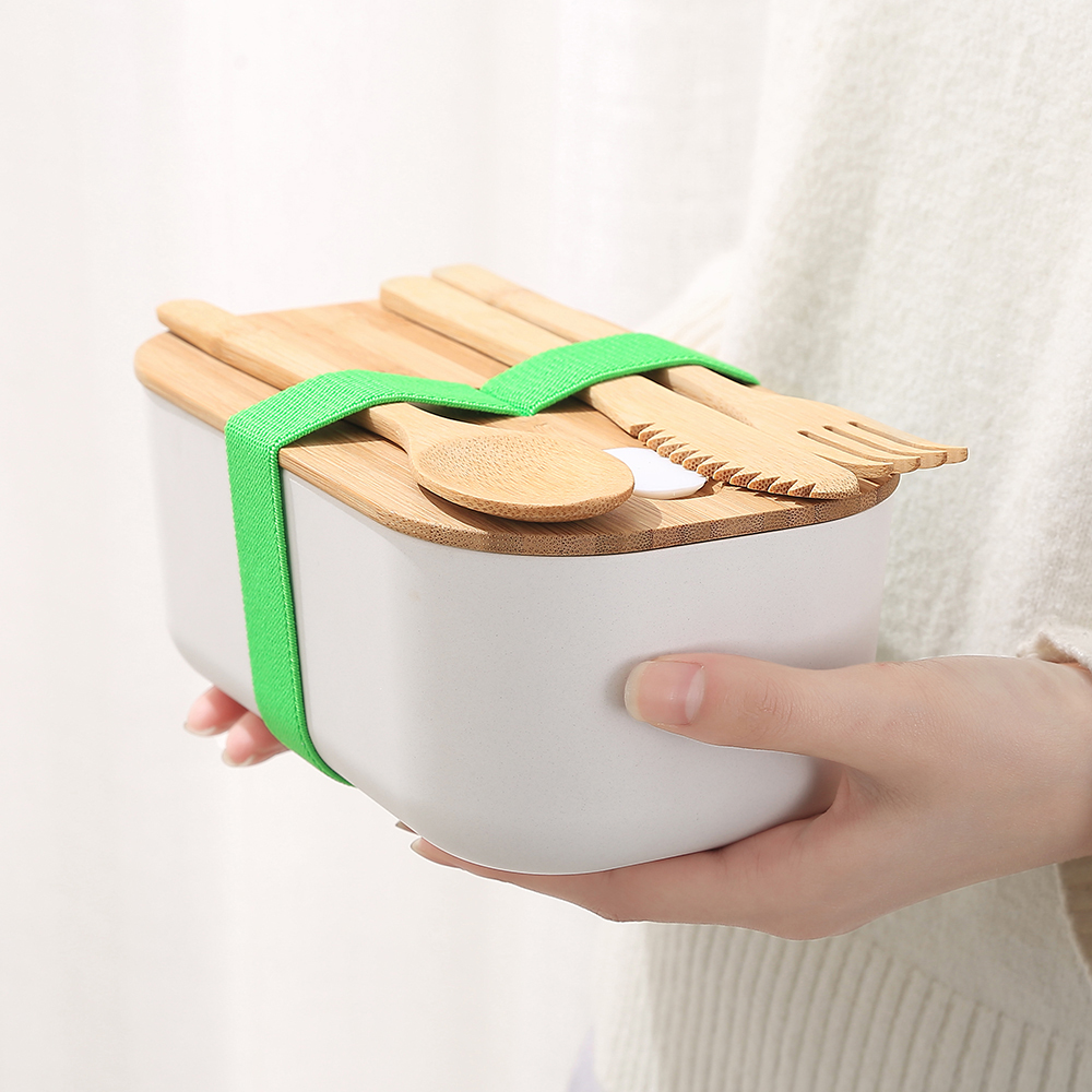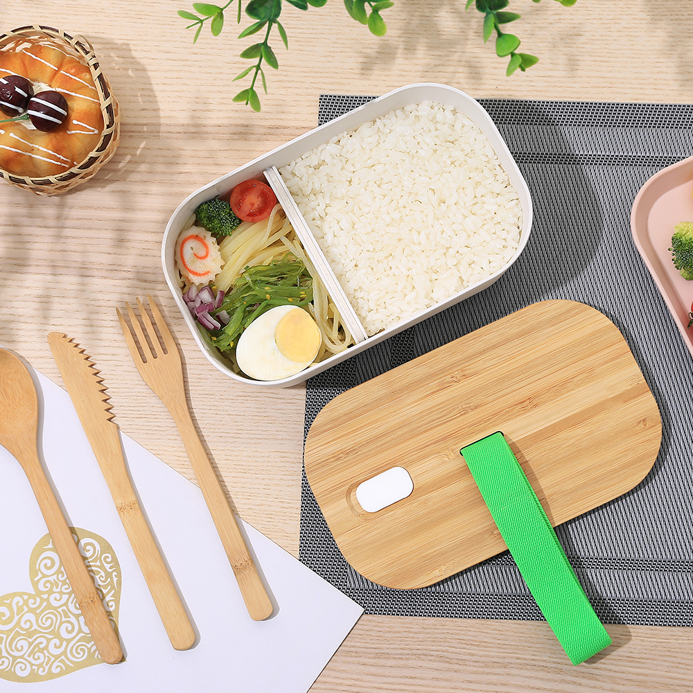 Amazon Top Seller Custom Logo Adult Kids Biodegradable Bento bamboo fiber Lunch box with bamboo lid & Cutlery