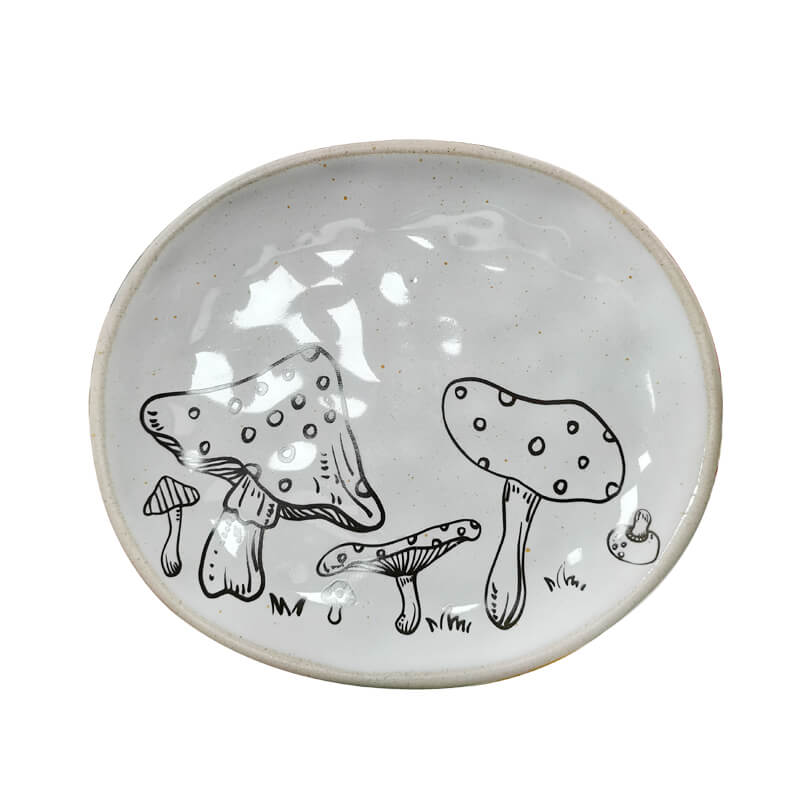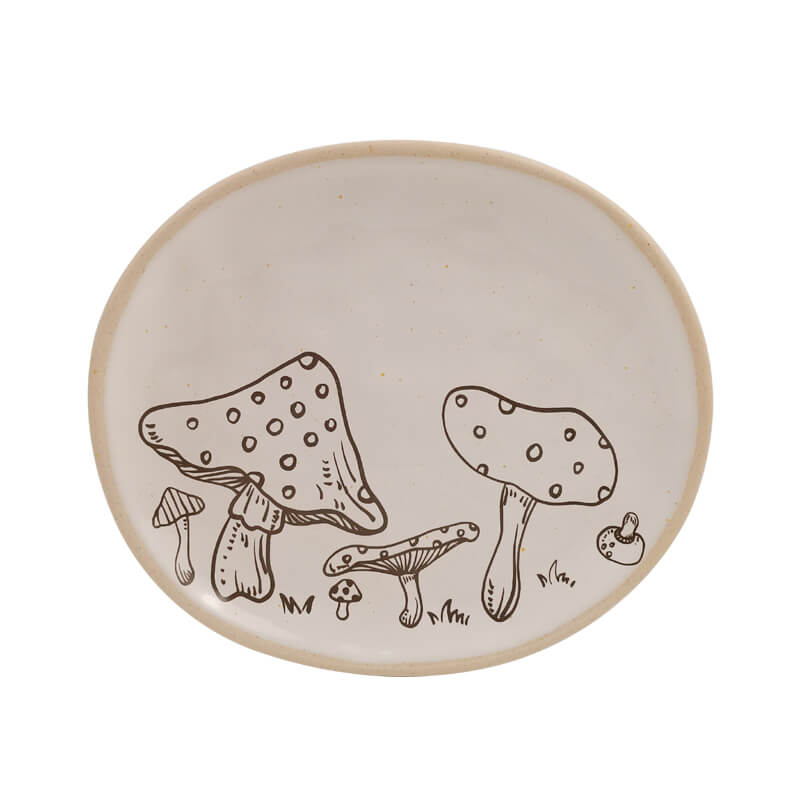 Ceramic Mushroom Plate with Rustic Uneven Bottom