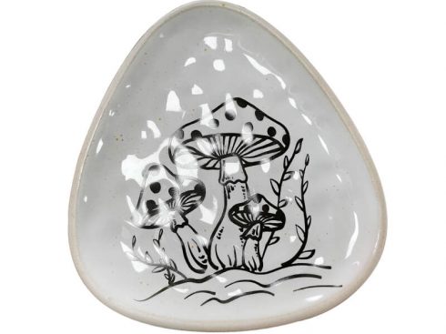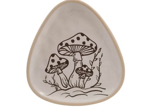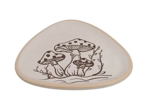Ceramic Small Triangular Mushroom Plate with Rustic Uneven Bottom and Clay Color Rim