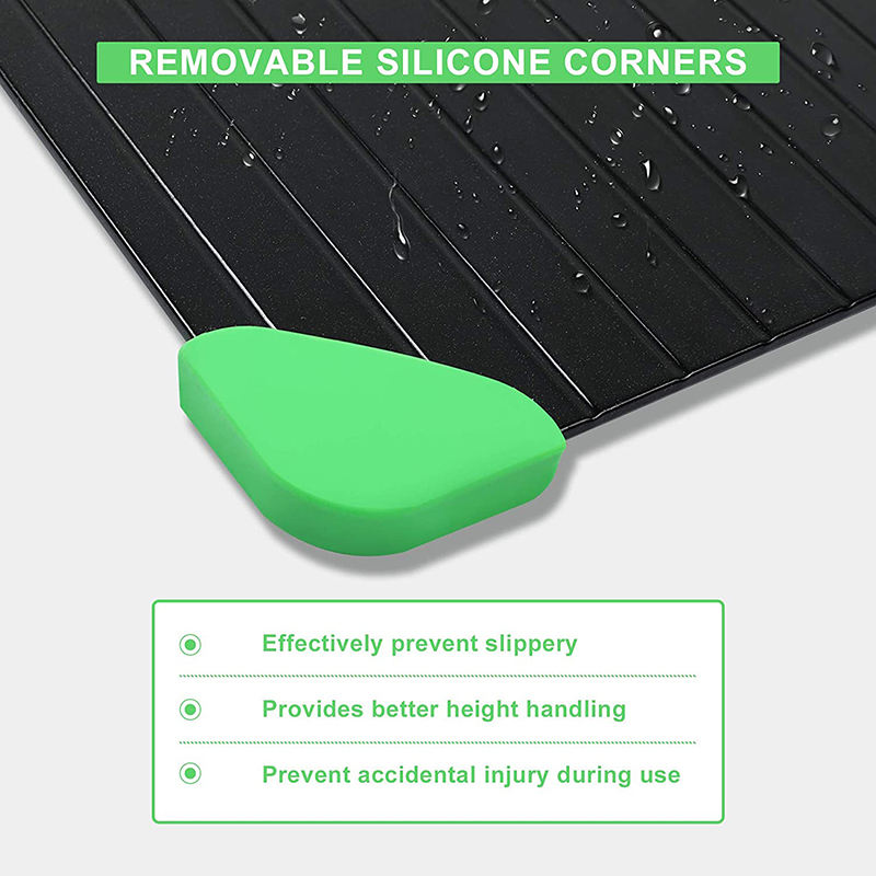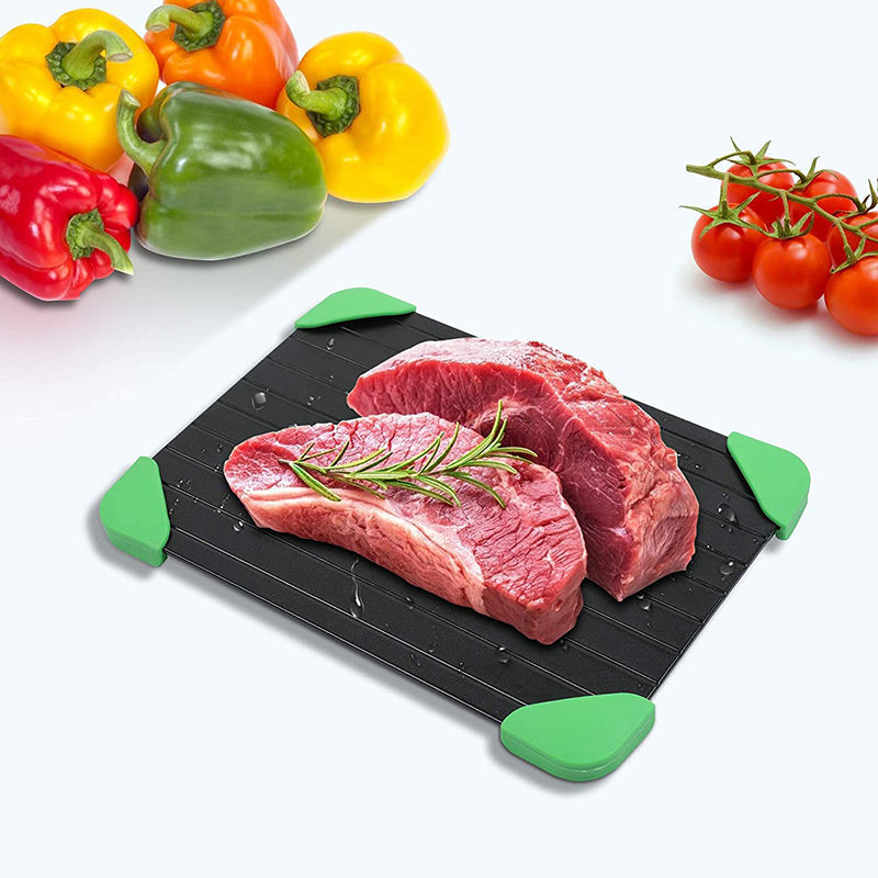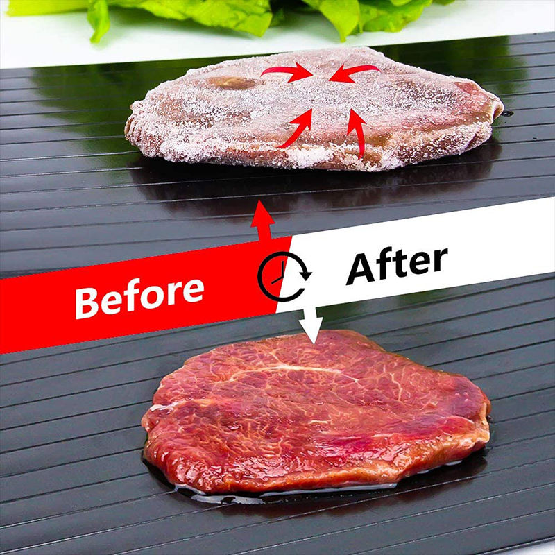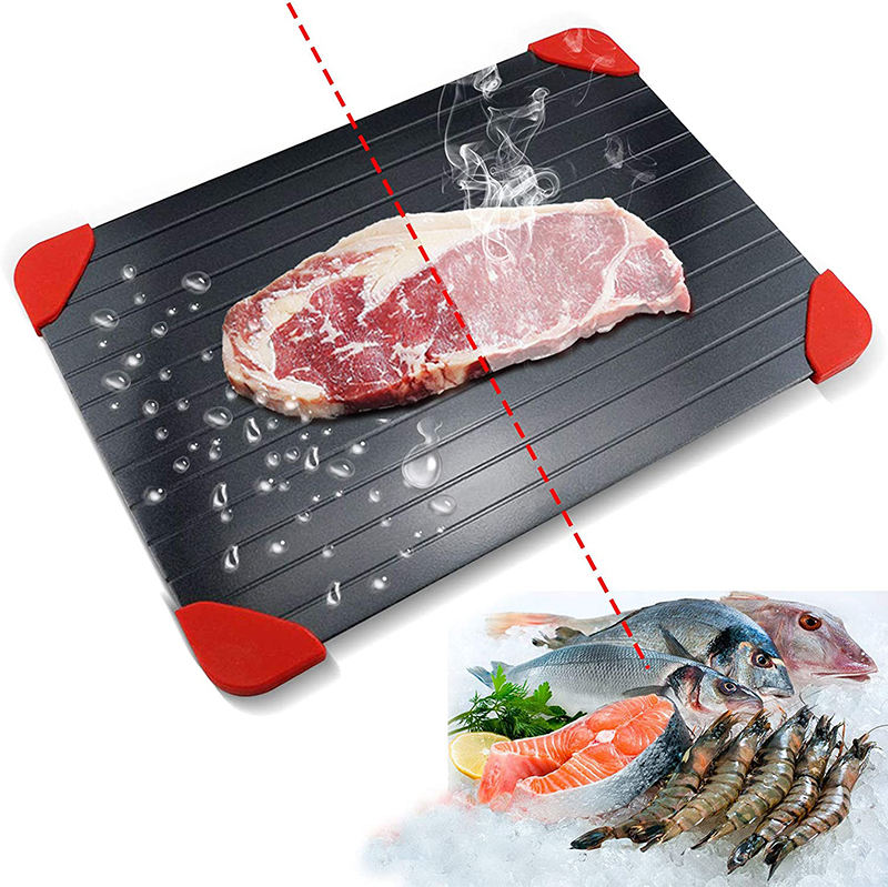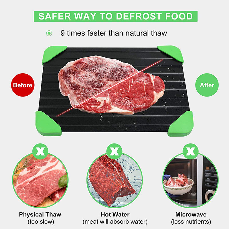 Fast Defrosting Tray For Thawing Frozen Foods – Eco-friendly Rapid Defrost Meat Tray Thaw Master With Silicone Borders – Defrost Meat Thaw Metal Plate