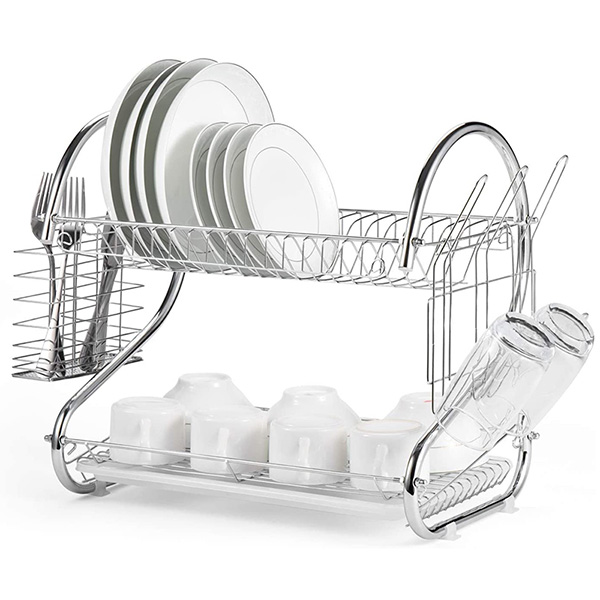 【STYLISH DESIGN】 Stylish design and color fit mostly kitchen decoration. It is not only a dish rack, but also a work of art. Save space to the greatest extent and keep the kitchen tidy and clean.