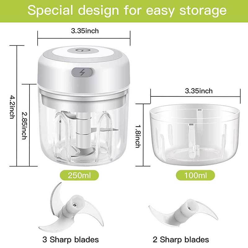 👍【Two choices for one product】Package come with 1*motor head, 1*250ML cup, 1*100ML cup, 2*blades, 1* USB cable, 1* user manual. Meat and vegetables can be minced in different cups, which is safer and hygienic.The mini chopper helps you do small, quick jobs such as chopping garlic, ginger, peppers, carrots, vegetables, onion more.