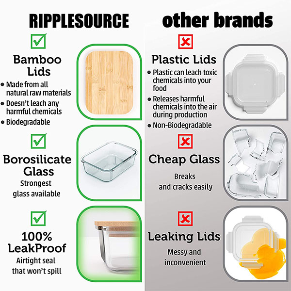 ♚ WE CARE ABOUT YOUR HEALTH – No need to worry about food, odor, or irritants seeping into these nonporous glass containers. Designed to safeguard your health, they are non-toxic and BPA-free.
