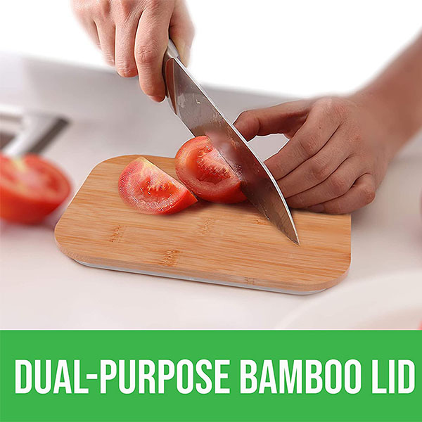 ♚ DUAL-PURPOSE BAMBOO LID – The beautiful tight-fitting bamboo lids also function as cutting boards, while the leakproof cover ensures no spills.
