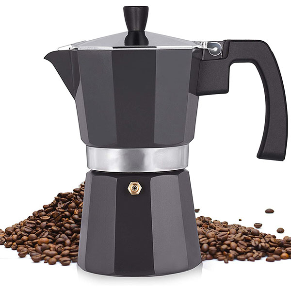 Coffee Moka Pot Aluminum Stove Percolator Pot for Espresso,6 Cups Black Moka, Cuban Coffee, Cappuccino, Latte and More, Perfect for Camping