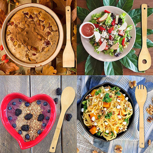 ♚PRACTICAL DESIGN AND FUNCTIONALITY- Designed to perform an array of kitchen tasks, this wooden kitchen utensil set features contoured heads so you can perform precise functions. Smooth, comfortable handles make using them easy. Included slotted, solid, and turner wooden spatula makes flipping omelettes and mixing ingredients easy, while a solid and slotted wooden spoon make preparing sauces and tasting soups simple. Spoon fork provides versatility for sipping, eating, or serving.