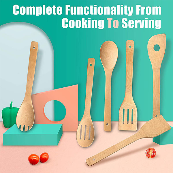 ♚COMPLETE COOKING & SERVING UTILITY- From cooking to serving, experience the complete functionality of these premium wooden spoons for cooking. Practical, reliable bamboo utensil set provides helpful implements for every task, whether you’re flipping ingredients, tasting sauces, or serving a finished meal, so you’ll always have the right tool while you’re working in the kitchen, no matter what you’re making.