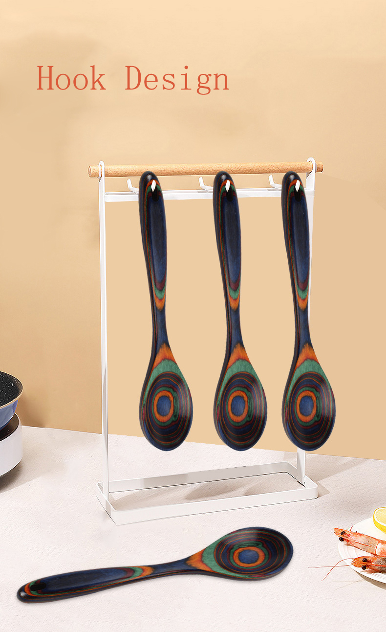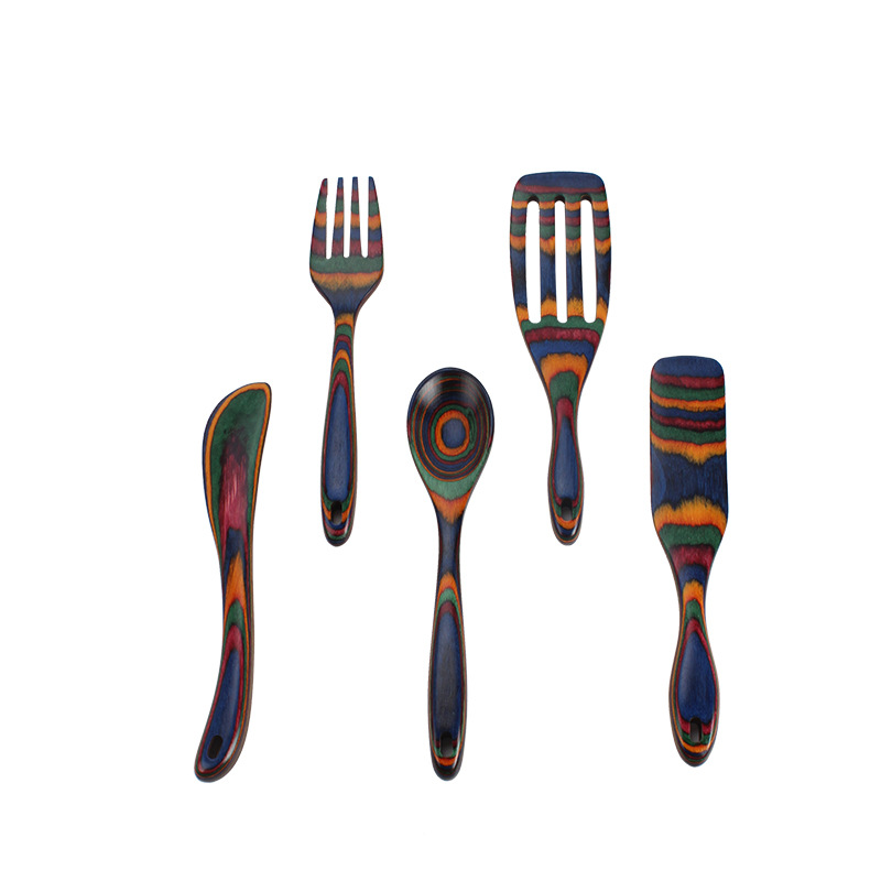 Mini Four-Color Rainbow Pakkawood 5-Piece Spurtle Wooden Shovel Spoon Cooking Shovel Household Solid Wood Kitchen Utensils Set