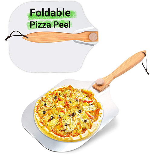 Aluminum Metal Pizza Peel with Foldable Wood Handle 12″ x 14″ Great Gift for Homemade Pizza Enthusiasts. Easy Storage Pizza Spatula for Baking Bread