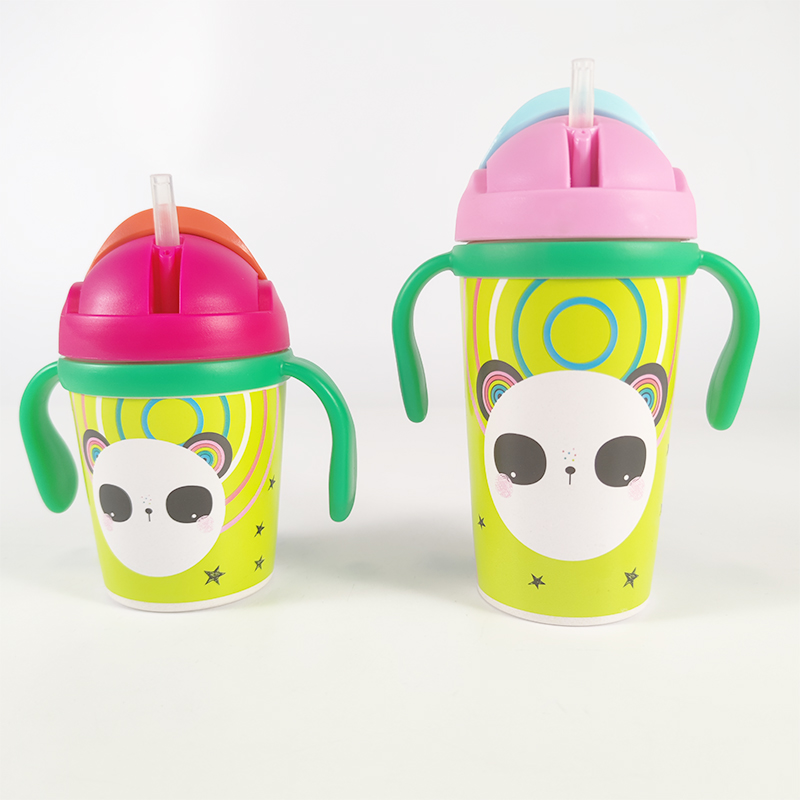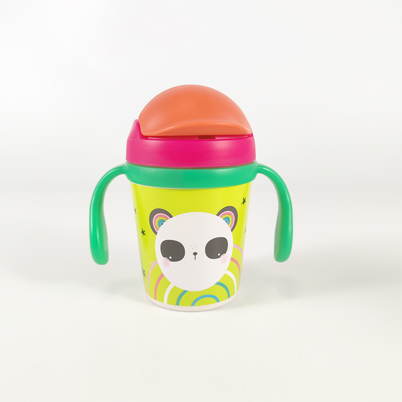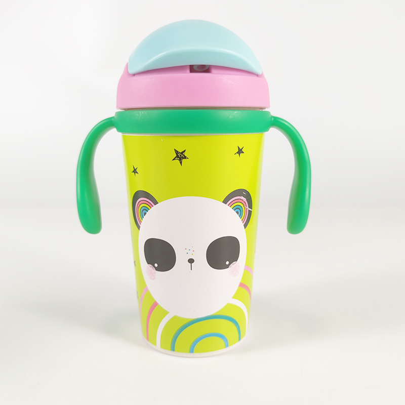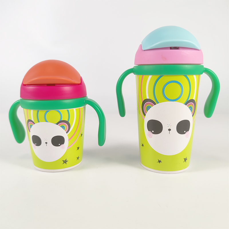 Eco-Friendly Biodegradable 300Ml 350Ml Bpa Free Pla Bamboo Fiber Kids Binaural Printed Sippy Cup Drinking Bottle With Handle
