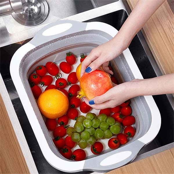 🌶【3 in 1 Cutting Board】Foldable sink can be used to wash dishes, vegetables, fruits. Collapsible cutting board can be used to cut meat, vegetables and fruits alse used as a storage basket for storing various foods and drinks, which effective save your money, time and space.