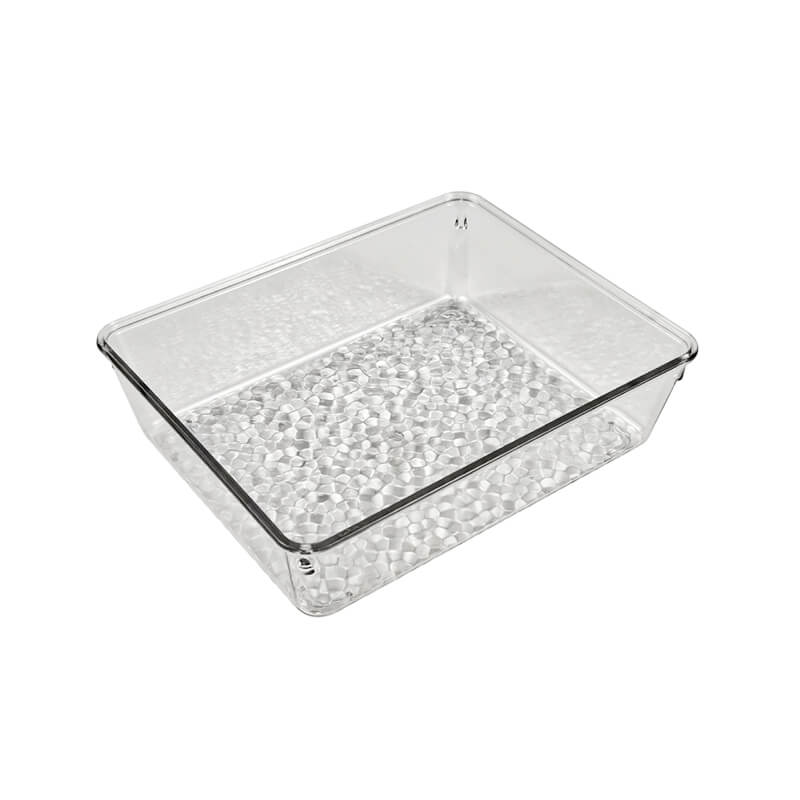 | Product name | Rectangle Recycled PET Plastic Clear Tabletop Stackable Storage Tray | ||