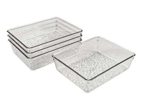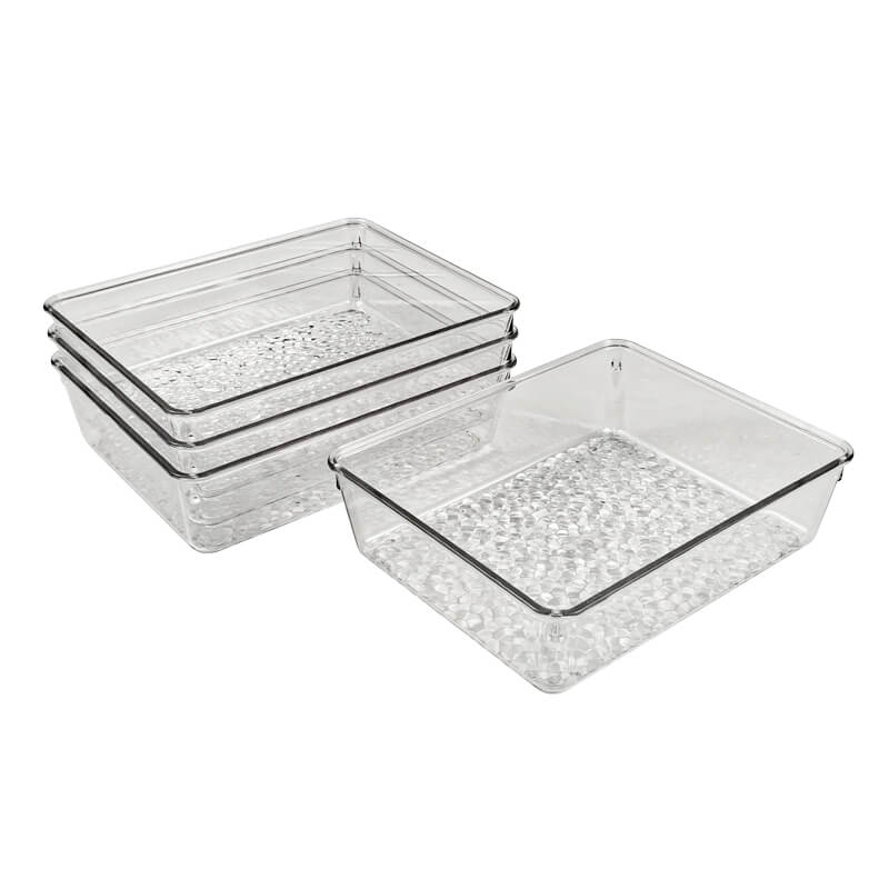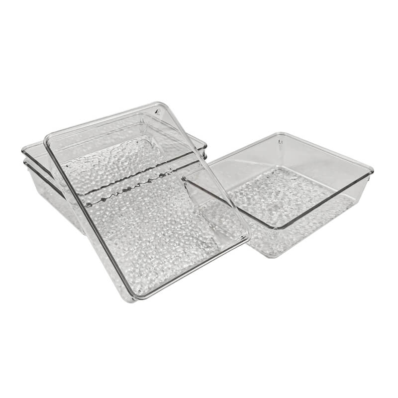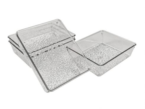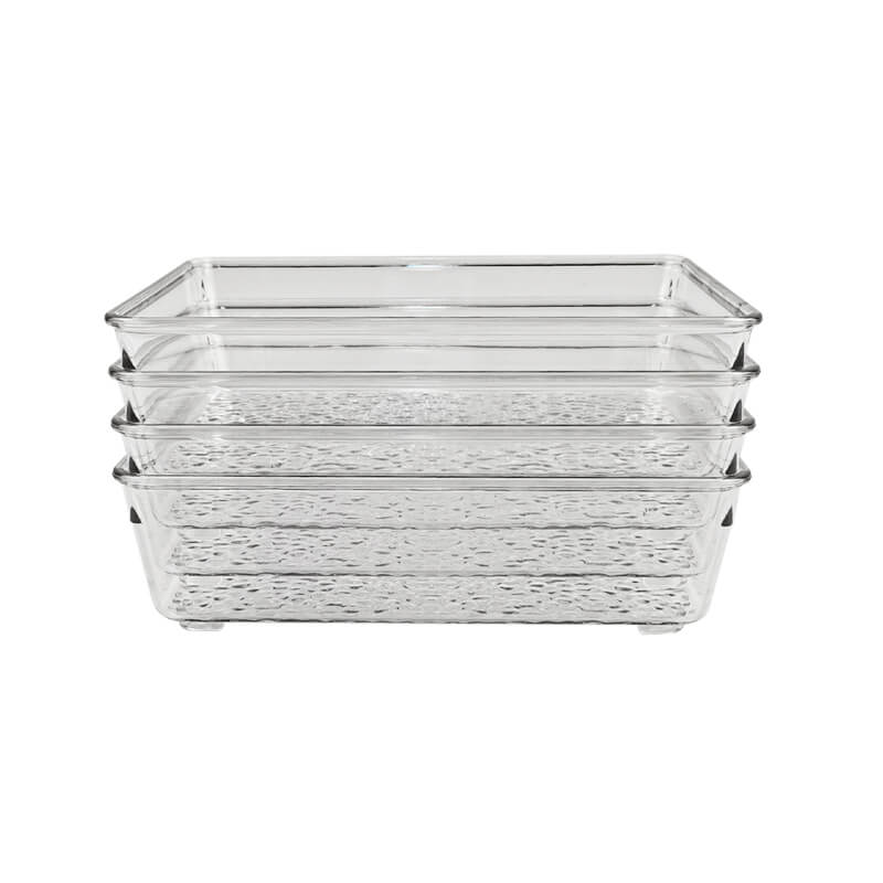 Rectangle Recycled PET Plastic Clear Tabletop Stackable Storage Tray