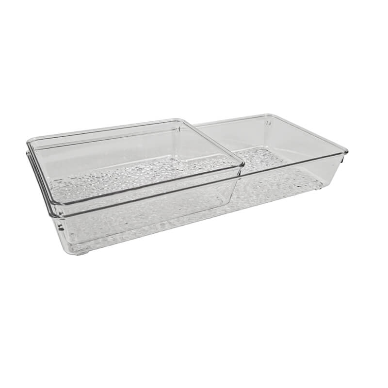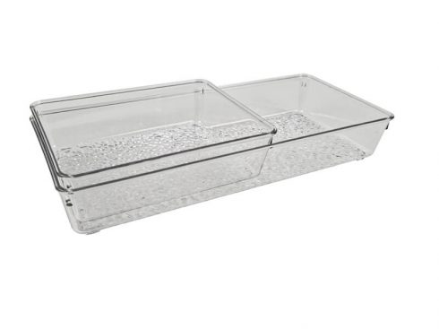 Rectangle Recycled PET Plastic Clear Tabletop Stackable Storage Tray