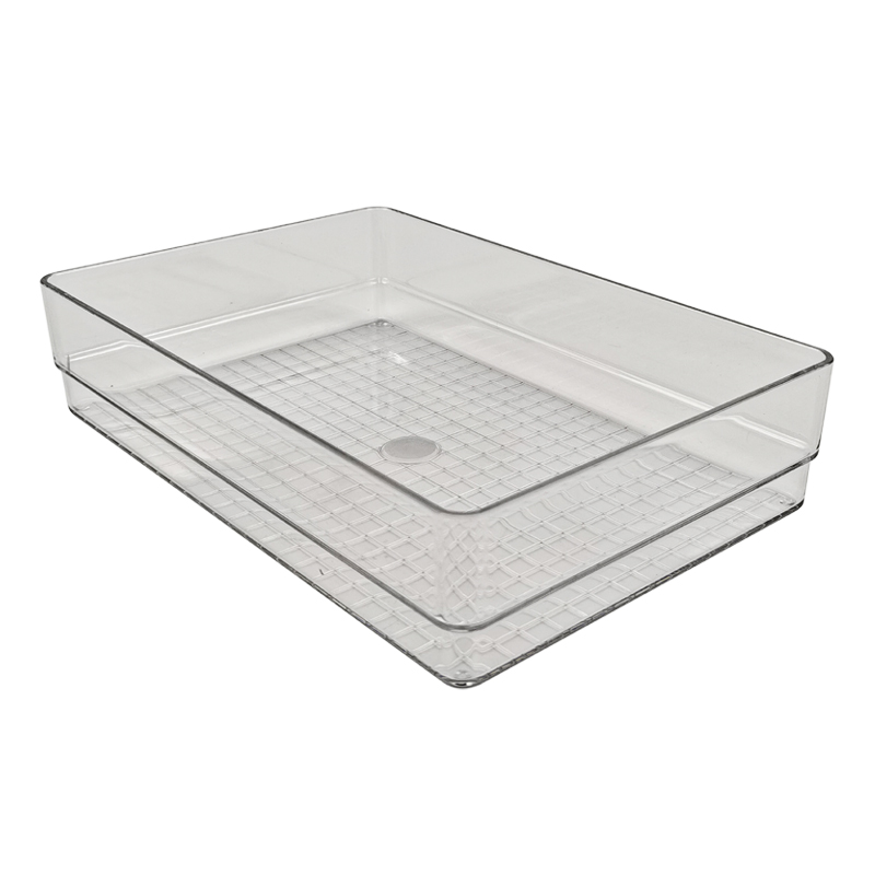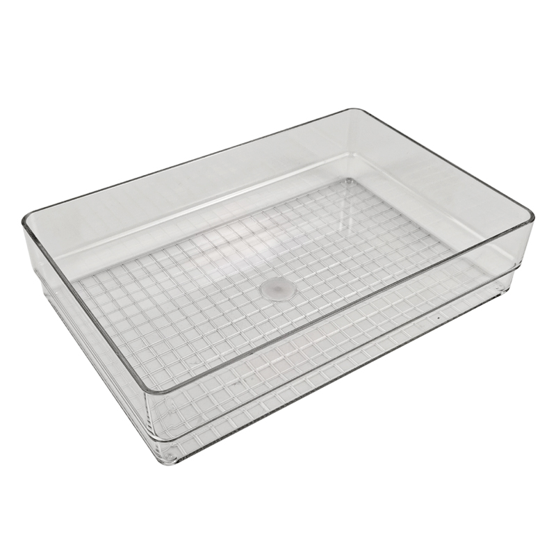 | Product name | Rectangle Recycled PET Plastic Clear Tabletop Stackable Storage Tray | ||