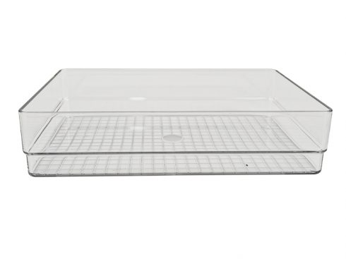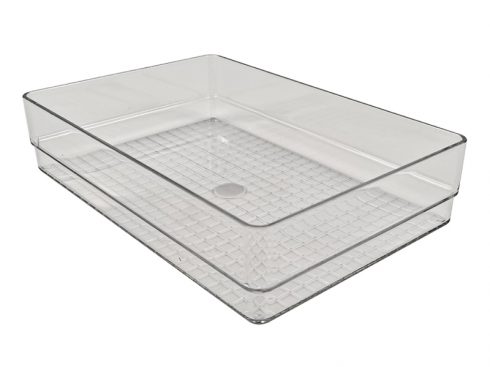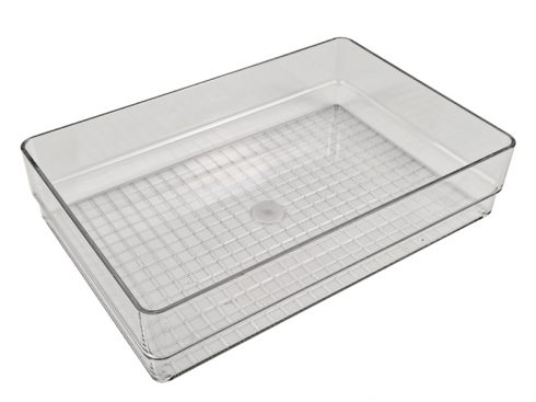 Rectangle Recycled PET Plastic Clear Tabletop Stackable Storage Tray