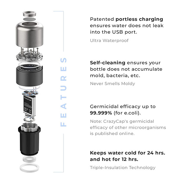 ♚60 SECONDS TO PURE REFRESHMENT | So easy, even the kids can do it! With just a few taps of the finger, you can enjoy pristine drinking water whether you’re at home, camping, on the sports field, or in the parent pick-up line. Tap the cap twice for quick 60-second cleansing, or five times for deeper 2-minute purification.