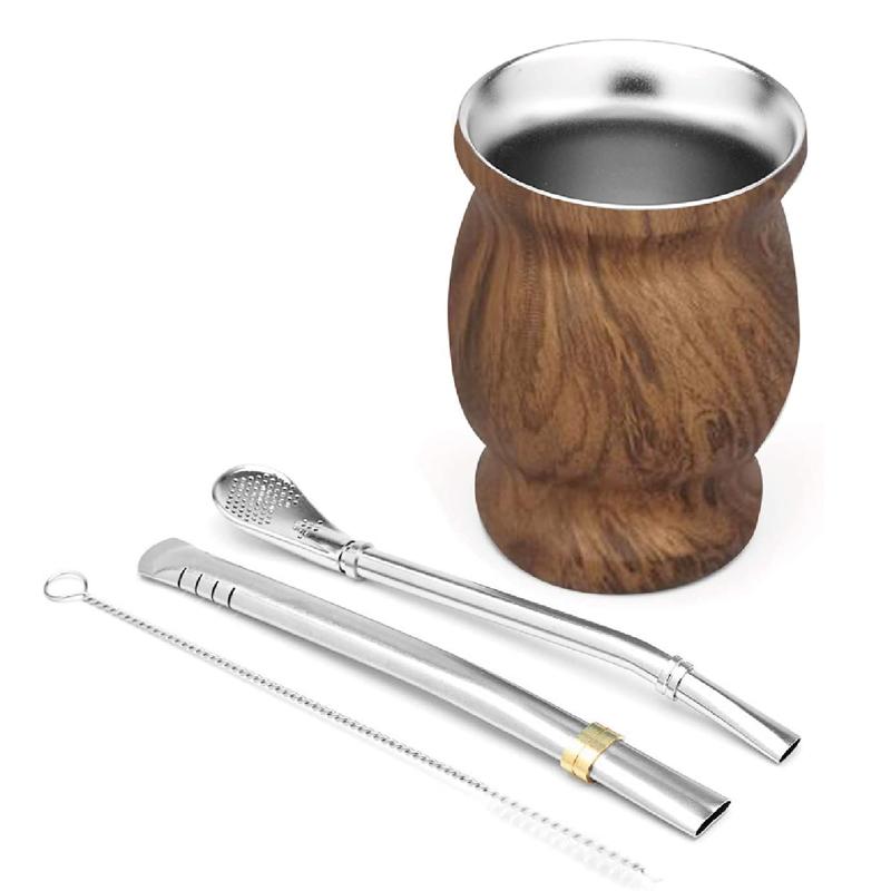 🍃DOUBLE-WALLED FEATURE: This double-walled Mate Cup is great for both hot and cold beverages. The double-walled design will hold your preferred temperature. You can also use this Yerba Mate Tea Cup with coffee or any other hot or cold beverage.