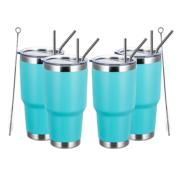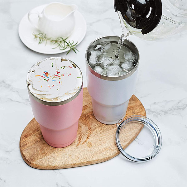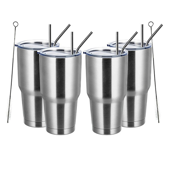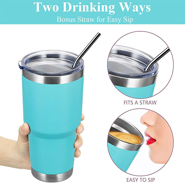 ♚TRAVEL TUMBLER BULK: it comes with a leakproof lid and 2 reusable straws which both are not contain BPA . There is a drinking hole in the lid for placing a straw or drinking directly. The sliding lid has a rubber gasket ensures a tihgt fit. So it can be easily closed to avoid leakage and spatter.