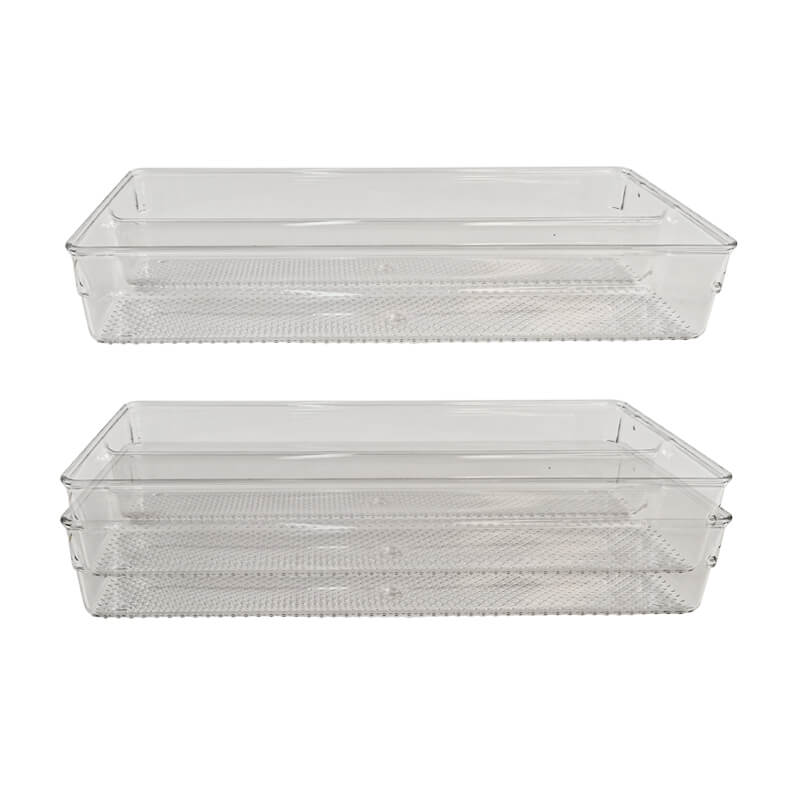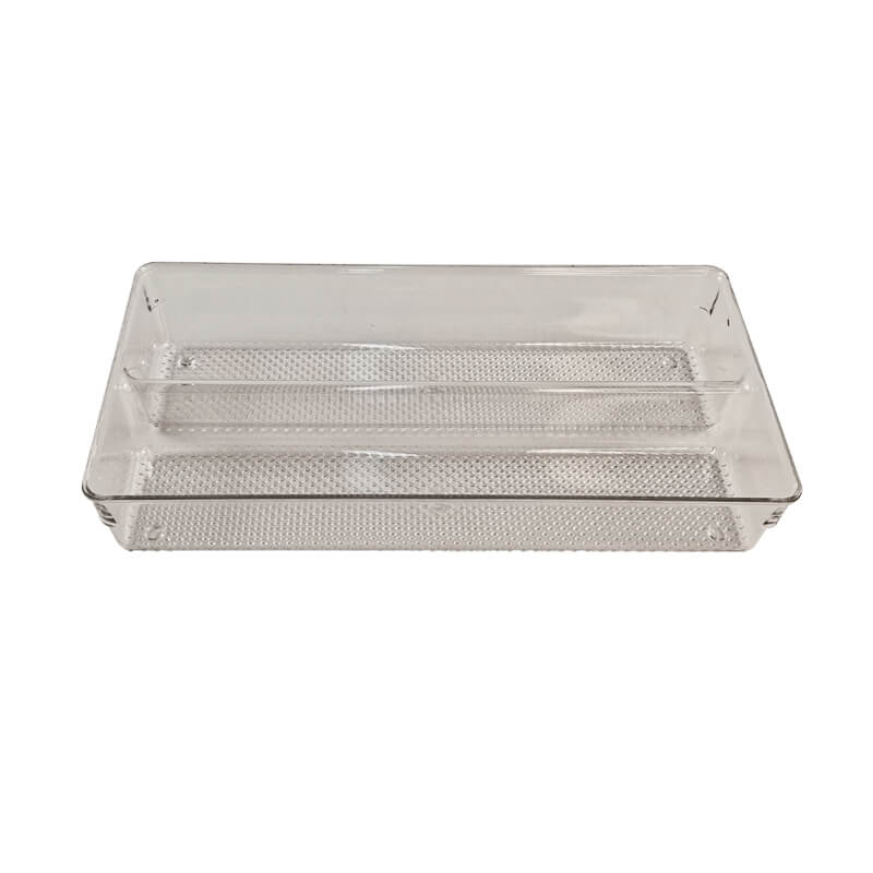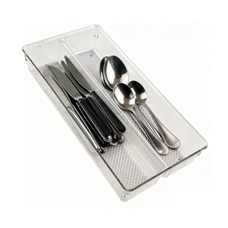 | Product name | Transparent Kitchen Knife Fork Spoon Organizer | 2-Section Stackable Drawer Tray with Anti-slip Dot Base | ||