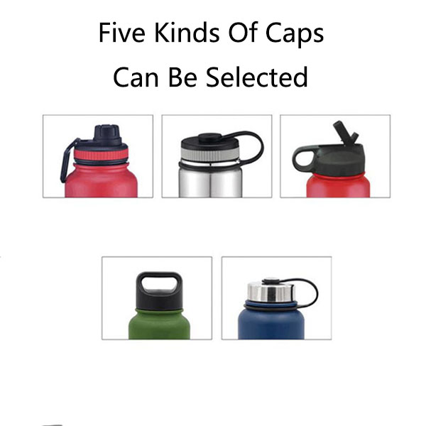 ♚5 lids included – included with the stainless steel water bottle are 5 interchangeable 100% leak-proof lids that fit your every need. This set includes: a basic lid, a sports lid, a climbing hook lid and a straw lid with straw.